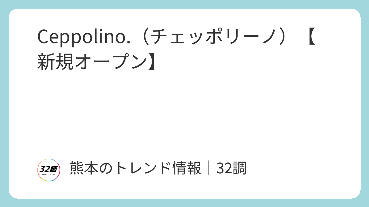 スポンサーリンク 熊本イベント情報 32調|地域情報 Ceppolino.(チェッポリーノ)【新規オープン】 【熊本】開店情報 X Facebook はてブ LINE Pinterest コピー 2025.12.20 【熊本】開店情報 2025年11月オープングルメ情報山鹿市麺料理 行ってみたい 目次 2025年11月21日 新規オープンメニュー「Ceppolino.(チェッポリーノ」の営業時間・地図 2025年11月21日 新規オープン 厳選された生パスタや薪火焼きピッツァ メニュー レトロナポリタン 1,490円 悪魔のやみつきパスタ 1,790円 ペスカトーレ 2,090円 マルゲリータ 1,790円 薪火焼きチキンのジェノベーゼピッツァ 1,890円 ティラミス 850円 季節のタルト 820円 「Ceppolino.(チェッポリーノ」の営業時間・地図 【店名】Ceppolino.(チェッポリーノ 【営業時間】 11:00〜18:00(水・木) 11:00〜22:00(金・土・日・祝・祝前日) 【定休日】月曜日・火曜日(祝日は営業) 【住所】〒861-0313 熊本県山鹿市鹿本町中富68−2 【駐車場】 【連絡先】070-8553-8469 【SNS】Instagram ※掲載している内容は、ブログ管理人が訪問した当時のものですので予めご了承ください。 行ってみたい 口コミ・コメント