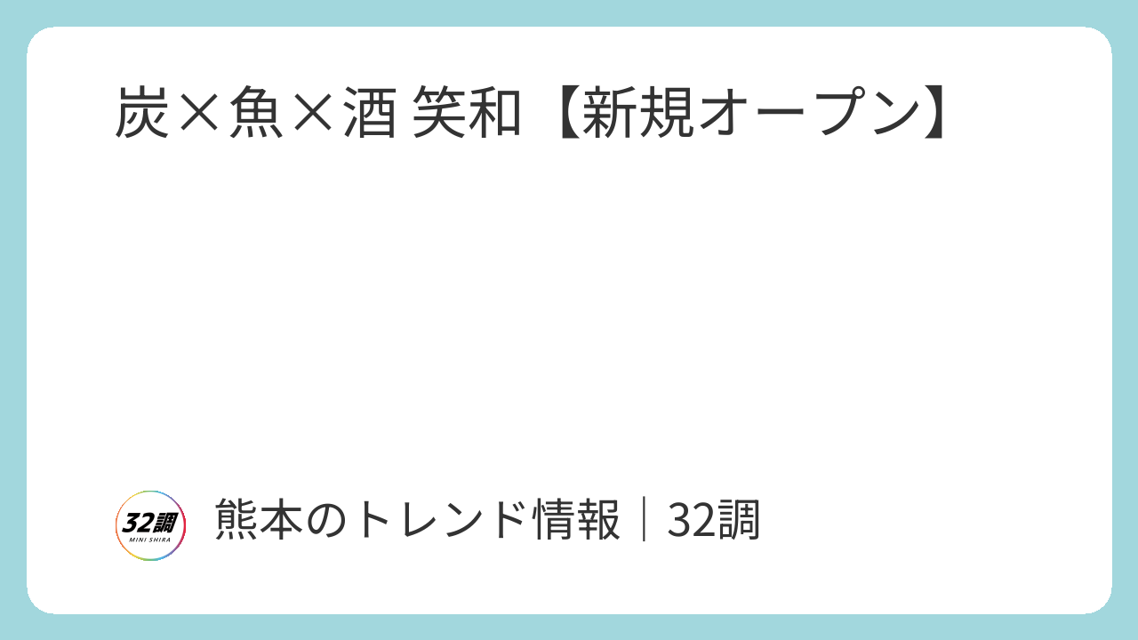 スポンサーリンク 熊本イベント情報 32調|地域情報 炭×魚×酒 笑和【新規オープン】 【熊本】開店情報 X Facebook はてブ LINE Pinterest コピー 2025.12.21 【熊本】開店情報 2025年11月オープングルメ情報合志市居酒屋 行ってみたい 目次 2025年11月19日 新規オープン「炭×魚×酒 笑和」の営業時間・地図 2025年11月19日 新規オープン 炭火焼き&魚介類メインにした居酒屋がオープン 「炭×魚×酒 笑和」の営業時間・地図 【店名】炭×魚×酒 笑和 【営業時間】18:00~3:30 【定休日】木曜日 【住所】〒861-1102 熊本県合志市須屋1986−12 ボンネージュさくら 102 【駐車場】あり 【連絡先】080-3953-7319 【SNS】Instagram 【予約】ホットペッパー ※掲載している内容は、ブログ管理人が訪問した当時のものですので予めご了承ください。 行ってみたい 口コミ・コメント