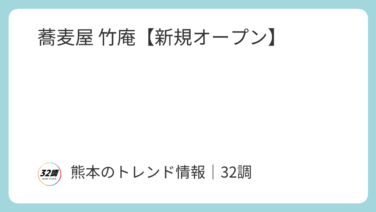 【熊本】開店情報 蕎麦屋 竹庵【新規オープン】 2025年11月 新規オープン詳細は不明ですが、新しく蕎麦屋さんがオープンしているようです。「蕎麦屋 竹庵」の営業時間・地図【店名】蕎麦屋 竹庵【営業時間】【定休日】【住所】〒869-2505 熊本県阿蘇郡小国町北里2083−1※掲載してい... 2025.12.21 【熊本】開店情報