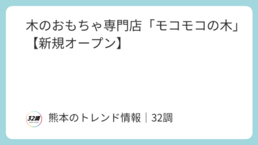 【熊本】開店情報 木のおもちゃ専門店「モコモコの木」【新規オープン】 2025年12月5日 新規オープン世代を超えて楽しめる木のおもちゃが揃っています。「モコモコの木」の営業時間・地図【店名】モコモコの木【営業時間】10:00~17:00【定休日】木曜日・日曜日【住所】〒860-0862 熊本県熊本市南区平田... 2025.12.27 【熊本】開店情報