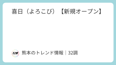 【熊本】開店情報 喜日(よろこび)【新規オープン】 2026年3月 新規オープンベーグルをメインとした「パンと喫茶」のお店です。朝からオープンするようです。「喜日(よろこび)」の営業時間・地図【店名】喜日(よろこび)【営業時間】【定休日】【住所】 〒862-0950 熊本県熊本市中央区水前寺... 2026.02.24 【熊本】開店情報