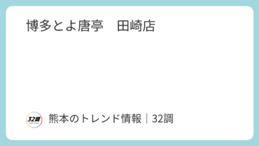 【熊本】開店情報 博多とよ唐亭 田崎店 TSUTAYA田崎店近くにオープン。私も好きなお店。博多とよ唐亭さん熊本市内に3店舗があります。健軍・小峯・田井島。お祭りなどのイベント出店もされています。「博多とよ唐亭 田崎店」の営業時間・地図【店名】博多とよ唐亭 田崎店【営業時間】【定... 2026.02.24 【熊本】開店情報