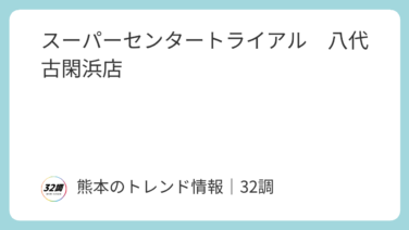 【熊本】開店情報 スーパーセンタートライアル 八代古閑浜店 2026年6月 新規オープントライアル、次は八代にできるようです。「スーパーセンタートライアル 八代古閑浜店」の営業時間・地図【店名】スーパーセンタートライアル 八代古閑浜店【営業時間】【定休日】【住所】〒866-0891 熊本県八代市古閑... 2026.02.24 【熊本】開店情報