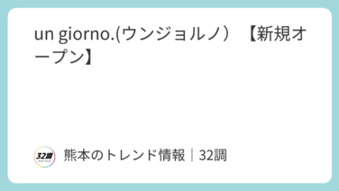 【熊本】開店情報 un giorno.(ウンジョルノ)【新規オープン】 2026年2月9日 新規オープンイタリアンレストランがオープン。ランチのコースは、2,200円/5,500円/8,800円があるようです。「un giorno.(ウンジョルノ)」の営業時間・地図【店名】un giorno.(ウンジョルノ)【... 2026.02.24 【熊本】開店情報