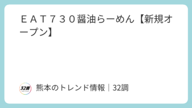 【熊本】開店情報 EAT730醤油らーめん【新規オープン】 2025年12月31日 新規オープン天草市の崎津天主堂入口にオープンしたお店。ワンコインラーメンなどがあるようです。「EAT730醤油らーめん」の営業時間・地図【店名】EAT730醤油らーめん【営業時間】9:00~17:00【定休日】【住所... 2026.01.19 【熊本】開店情報