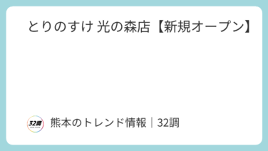 【熊本】開店情報 とりのすけ 光の森店【新規オープン】 2026年6月新規オープン嘉島店に続いて、光の森に新規オープンマックスバリュー光の森店の近くです。「とりのすけ 光の森店」の営業時間・地図【店名】とりのすけ 光の森店【営業時間】【定休日】【住所】〒869-1108 熊本県菊池郡菊陽町光の森... 2026.04.18 【熊本】開店情報