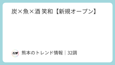 【熊本】開店情報 炭×魚×酒 笑和【新規オープン】 2025年11月19日 新規オープン炭火焼き&魚介類メインにした居酒屋がオープン「炭×魚×酒 笑和」の営業時間・地図【店名】炭×魚×酒 笑和【営業時間】18:00~3:30【定休日】木曜日【住所】〒861-1102 熊本県合志市須屋1986... 2025.12.21 【熊本】開店情報
