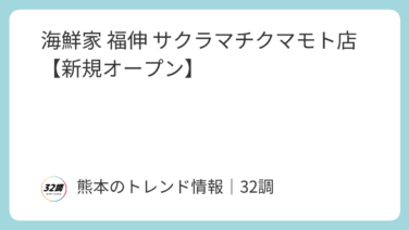 【熊本】開店情報 海鮮家 福伸 サクラマチクマモト店【新規オープン】 2026年春 オープン予定海鮮家 福伸さん。天草や熊本空港、JR熊本駅など6店舗ほど運営されています。今度は、サクラマチクマモトにもできるようです。「海鮮家 福伸 サクラマチクマモト店」の営業時間・地図【店名】海鮮家 福伸 サクラマチクマモ... 2025.12.28 【熊本】開店情報