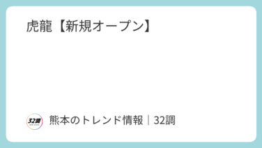 【熊本】開店情報 虎龍【新規オープン】 2025年12月 新規オープン韓国家庭料理店が菊池市にオープンサムギョプサル 2,000円/1人前テジカルビ 2,300円/1人前「虎龍」の営業時間・地図【店名】虎龍【営業時間】18:00〜22:00※ランチはときどき【定休日】火・水・木【... 2026.01.19 【熊本】開店情報
