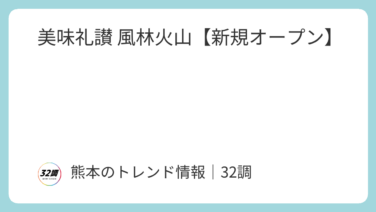 【熊本】開店情報 美味礼讃 風林火山【新規オープン】 2025年12月17日 新規オープン新鮮な魚介をはじめ、あか牛・肥後あそび豚・アローカナの卵など、旬の食材を使用した料理が味わえます「美味礼讃 風林火山」の営業時間・地図【店名】美味礼讃 風林火山【営業時間】17:00~23:00【定休日】... 2026.01.21 【熊本】開店情報