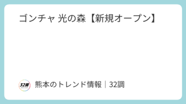 【熊本】開店情報 ゴンチャ 光の森【新規オープン】 2026年4月 新規オープン台湾茶をはじめとしたドリンクやフードが味わるお店が、光の森にオープンします。「ゴンチャ 光の森」の営業時間・地図【店名】ゴンチャ 光の森【営業時間】【定休日】【住所】〒869-1108 熊本県菊池郡菊陽町光の森7... 2026.01.21 【熊本】開店情報