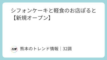 【熊本】開店情報 シフォンケーキと軽食のお店ぽると【新規オープン】 2025年1月31日 新規オープン米粉と体にやさしい素材にこだわった ふんわり、もちもちのスイーツが自慢のお店のようです。「ぽると」の営業時間・地図【店名】ぽると【営業時間】11:00〜15:00【定休日】不定休【住所】〒861-4112 ... 2026.01.31 【熊本】開店情報