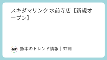 【熊本】開店情報 スキダマリンク 水前寺店【新規オープン】 2026年5月 新規オープン健軍にある人気パン屋さんの「のれんわけ」店が熊本市中央区国府にオープンします。場所は、JR水前寺駅前です。「スキダマリンク 水前寺店」の営業時間・地図【店名】スキダマリンク 水前寺店【営業時間】【定休日】【住所】... 2026.04.21 【熊本】開店情報