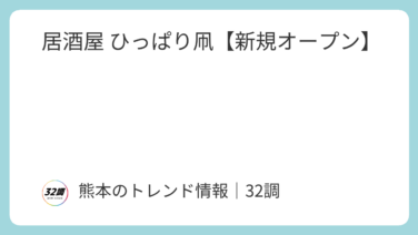 【熊本】開店情報 居酒屋 ひっぱり凧【新規オープン】 2026年3月31日 新規オープンお肉屋さんが営む、居酒屋が八代市にオープンしました。「居酒屋 ひっぱり凧」の営業時間・地図【店名】居酒屋 ひっぱり凧【営業時間】18:30~21:30【定休日】 月曜日【住所】〒869-4223 熊本県八代... 2026.04.21 【熊本】開店情報